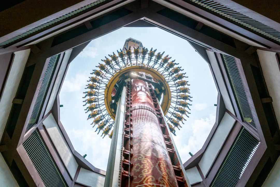 在這里我們體驗(yàn)了鳳舞九天,近40米高的高空旋轉(zhuǎn)飛椅,俯瞰整個(gè)樂(lè)園的美景,